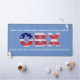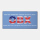 OBX in painted U.S.flag colours on a sky blue background. Outer Banks towns are listed in white.