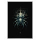 A high-quality wall art poster featuring a dark biomechanical spider design. The detailed teal and black arachnid has a single central golden eye and sits over faint occult symbols, sacred geometry, and subtle paint splatters on a white background. Perfect for adding an edgy, industrial, or dark fantasy aesthetic to any room. Ideal gothic home decor for bedrooms, studios, or gaming spaces.
