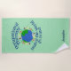 Occupational Therapy Makes the World Go Round towel featuring people holding hands across the globe. This cute occupational therapist gift in blue is perfect for an OT going on vacation.
