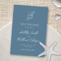 Dusty Blue Shell Beach Ocean Destination Wedding Invitation