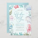 Ocean Animals Under The Sea Boy Baby Shower Invitation. Adorned with playful ocean creatures like a dolphin, starfish, octopus, and jellyfish, alongside colourful corals, all set against a serene blue backdrop. The enchanting script calligraphy beautifully spells out 'Under the Sea,' setting the tone for an aquatic adventure to welcome your little one.