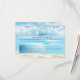 A soft blue ocean laps up against a sandy beach on this wedding reply card that can be used for a beach or ocean-themed wedding, a tropical destination wedding, or any beach-themed reception only celebration. Fairy lights are strung along the top of the image above the RSVP. Available with matching products.