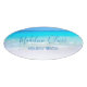 Iconic beach scene featuring mainly blue and aqua colours is the background of this Holiday Rental business name badge.