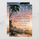 Unveil the magic of your upcoming matrimony with our romantic summer destination wedding invitations. Elegantly portraying a scenic coastal shoreline view, the brilliant hues of a setting sun, and subtly string lights, each invite is a glimpse into your enchanting event. Personalize with your unique details on our modern template, creating an invite as unforgettable as your love story.