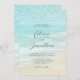 Beautiful aqua blue ocean waves crash against the beach, with string lights decorating the top, on these wedding invitations that are perfect for destination weddings, as well as any beach and coastal themed wedding. For matching products, visit the collection, or message me through Zazzle Chat.