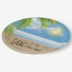 Tropical palm fronds on beach with seagull, cloud and sunshine.