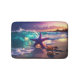 Ocean beach with violet starfish bath mat