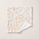 This bathroom towel set has a beautiful coral pattern in peach and white. It reminds you of the ocean. It has motifs of shells, corals, seagrass and other doodles. Original Artwork by Hes-Mari / Hes-Mari Design.