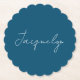 Ocean Blue Plain Elegant Modern Minimalist Name Paper Coaster