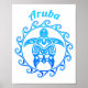 Ocean Blue Tribal Turtle Aruba Poster