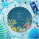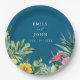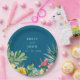 Ocean Blue Watercolor Tropical Floral Wedding Paper Plate