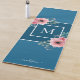 Ocean blue personalized monogram yoga mat featuring minimalist typography and pretty pink watercolour flowers. Simple. sweet, elegant and chic. Customize with initial and name. Includes front and back. Change background colors to suit your need and preference. Great gift ideas for her.