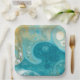 Ocean Blue Waves and Sandy Brown Fluid Art Paper Plate