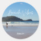Ocean Custom Name Classic Round Sticker with an original photo of an Australian surf beach in New South Wales taken by AB.
