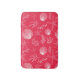 This bath mat features a repeating pattern of white hand-drawn sea shells, starfish, sand dollars and seaweed over a coral pink background. Perfect accent for a seaside retreat.