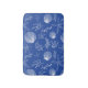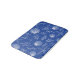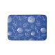 This bath mat features a repeating pattern of white hand-drawn sea shells, starfish, sand dollars and seaweed over a cobalt blue background. Perfect accent for a seaside retreat.