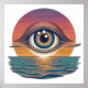 An enchanting poster print featuring an eye with the ocean and sunset within its pupil, symbolising the connection between sight and nature. The vibrant colours and intricate design make it a captivating piece for any room. Design file available for instant download.