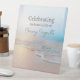 This funeral memorial pedestal sign features a gorgeous beach scene with an ocean wave. The colours are light beach, creams and blues showcasing a calming shoreline and a beautiful sunset. Easily edit with your own details. You can even edit the colours of the font. Message me if you need any matching items.