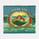 Ocean Gem mermaid cigar label print Fleece Blanket