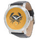 Show off your crush on crustaceans with our Ocean Glow, maritime icons, black-on-orange Crab wrist watch. For additional designing options, like changing the size, position, colour, and, even the number of crabs, along with the background colour, just click "Customise it," and let the fun begin!