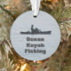 Ocean Kayak Fishing Black Silhouette Kayaking Blue Ornament