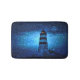 Nautical and seascape theme. A lighthouse a stormy night with dark clouds and rain. A light can be seen in the lighthouse tower. A dark blue image covered with drops, raindrops or drops from a shower. Matching shower curtains available