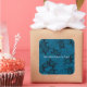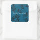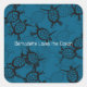 Sea Turtle ocean creature sticker, with black woodcut sea design on blue background.