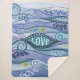 A contemporary coastal art design of stylised ocean waves and the word "love", could be interpreted as an illustration of a love of the ocean or a mystical ocean of love. This ink over watercolor effect sherpa blanket in shades of blue and aqua is a perfect addition to your home or beach house decor!