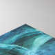 Blue-green grunge background with abstract painted waves and hearts. Composite image made of several acrylic paintings.