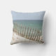 Looking through the beach fence towards the ocean with pretty hues of blue and green on Cape Cod