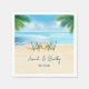 Two beach chairs are placed at the shore edge to represent the happy couple on this serene ocean-themed napkin. All wording can be changed to suit ANY celebration and the napkin can be customised for a wedding, shower, engagement party, anniversary celebration, or birthday party. Perfect for your beach-themed, or destination wedding or other event. Available with matching products.