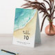 This beautiful beach themed table number card features watercolor shoreline wave on a sandy beach. The word "table" is in a cursive style font. The back side has the same design so the sign can be read from various angles. This design coordinates with the other products in the Cabo San Lucas • El Arco Wedding collection.