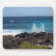 Picture of ocean waves splashing on the rocky shore on a mouse pad.