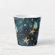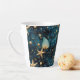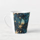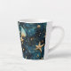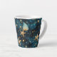 A latte mug with an elegant blue pattern with starfish, representing the ocean.