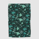 Cool black golf towel with a pattern of teal blue stingrays. Stylish stingrays and fishes swimming about underwater.