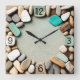 Ocean Stones and Sea Glass Driftwood Square Wall Clock