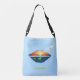 Ocean sunrise lips, sea turtles, stars and calligraphy on light blue Crossbody Bag.