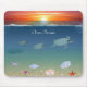 Ocean sunrise, swimming sea turtles and shells mouse mat