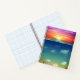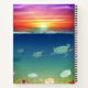 Ocean sunrise, swimming sea turtles, shells and pearls Notebook. Text can be personalised.