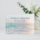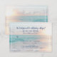 Light shades of peach, pink, and turquoise blue beach sunset or sunrise over ocean waves on a beach wedding or party rsvp response card with simple and modern navy blue typography and a white square outline. Photo background prints with a trendy faded effect for a soft romantic look. Click “Customise” to change text colour, font, and placement. Contact me for coordinating items you are looking for, or use the "transfer this design" to create your own on any Zazzle item. Also visit the Paper Grape Destinations Zazzle Shop for coordinating beach wedding stationery.