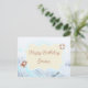 Two lines of customisable text on the front and one paragraph of personalised text on the rear highlight this ocean-themed birthday greeting postcard featuring a single crab, a life preserver and a note in a floating bottle.