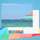 Bright colourful beach umbrella against tropical sea with an approaching boat, says it all! This image is original photography by JLW_PHOTOGRAPHY.