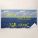 Enjoy this ocean themed scene with the wording, Life's A Breeze Sail Along quote written in sunny yellow text. Background has pretty blue ocean with white foam waves and pretty light blue sky with big fluffy white clouds. Original Photography Quote© TamiraZDesigns.