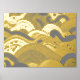 Ocean Waves Gold Foil With a Dark Grey Background Prints