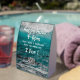 Oceanside restaurant paper table tent sign. Blue ocean water background and white text with a QR code template. Printing is the same on both sides, but the background, crashing wave is a little different. Sample wording is for happy hour, with a place for time / hours, special offer and menu QR code. Perfect for any bar / establishment on, or near, the water. Comes in two sizes.