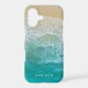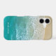 Pretty and trendy beach themed monogram iPhone 15 case with a tropical photograph of ocean waves on a sandy beach with the name of your choice. Perfect case for all the mermaid beach lovers out there.
