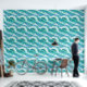 Ideal for any beachy establishment; coastal restaurant; seaside hotels; lodges; resorts and chalets, this turquoise and pale blue mixed with white mural features diagonal rolling Japanese style ocean waves. Bring the beach indoors, with this modern, contemporary and elegant seamless pattern that is easy to peel and stick to both smooth and textured walls.