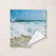Add the ocean to your bathroom decor with this towel set. Ocean waves crashing into shore makes for a stylish addition to any bathroom. Towel set includes a washcloth, hand towel, and bath towel.