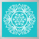 This white mandala sits on a turquoise background. The colours are very calming and peaceful. Part of the Rosenn Mandala Collection.