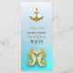 Oceanic Beach Themed Aqua Blue Wedding Menu Card with gold seahorses and anchors.